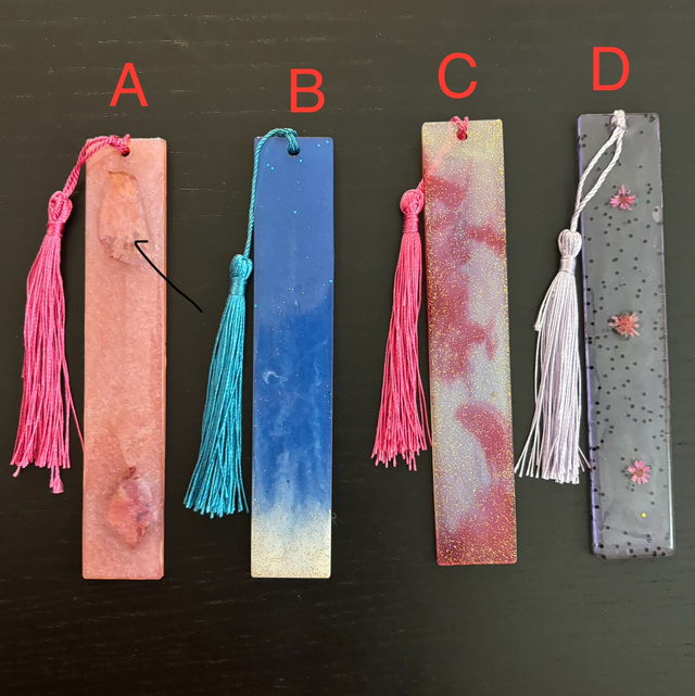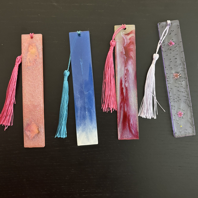 Marque page en résine époxy fabriquer par nous même de façon artisanal. Certaine de nos création sont incrusté de pierre naturelle semi précieuse.