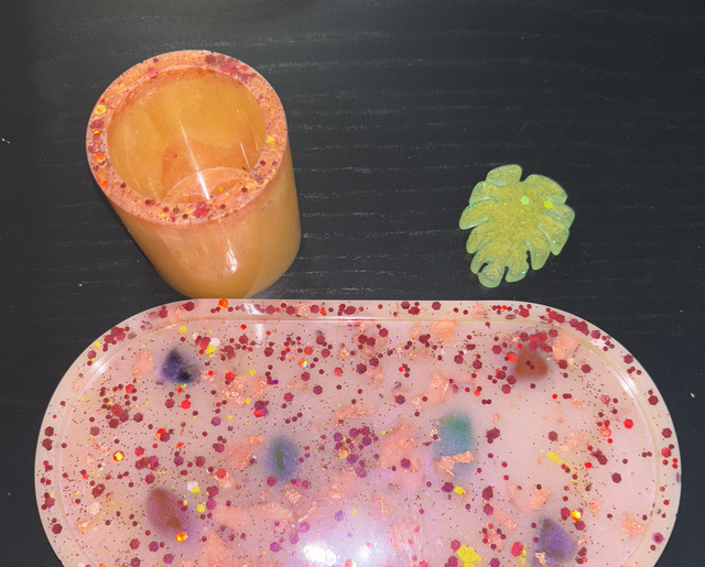 Plateaux avec porte stylo en résine époxy fabriquer par nous même de façon artisanal. Certaine de nos création sont incrusté de pierre naturelle semi précieuse.